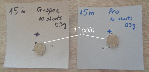 After quick accuracy test (15 meter distance indoor shooting, 0.3g BB), 9 shoots out of 10 was in 1" grouping for both guns.